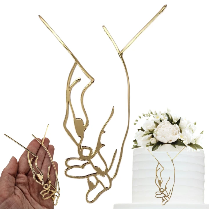 Dekor na bok tortu splecione DŁONIE złote lustro