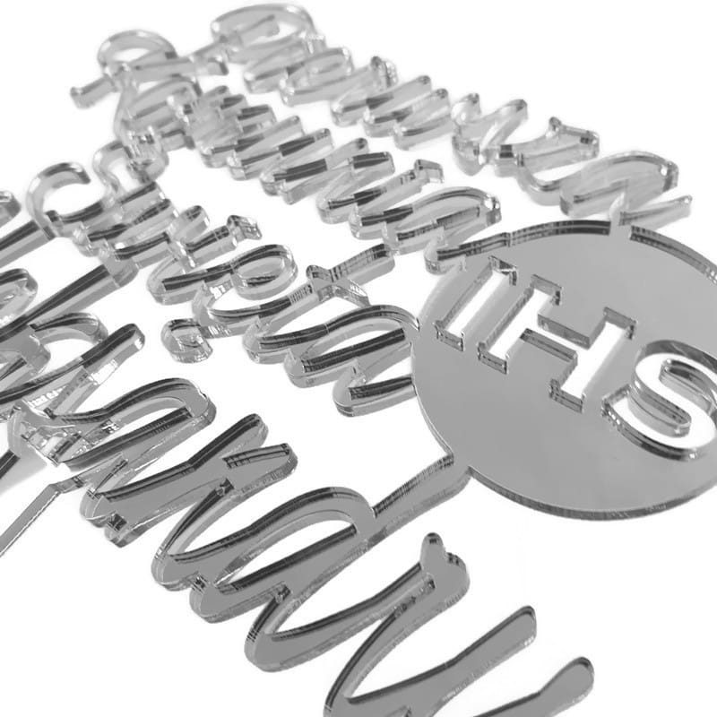 Topper na komunię Komunia Święta z imieniem IHS srebrny