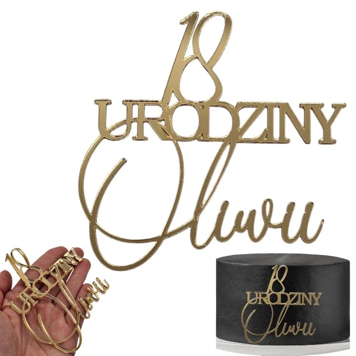 Topper na bok złoty dekor z imieniem i wiekiem