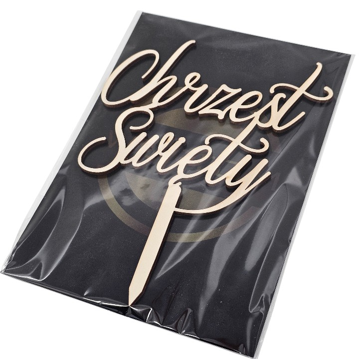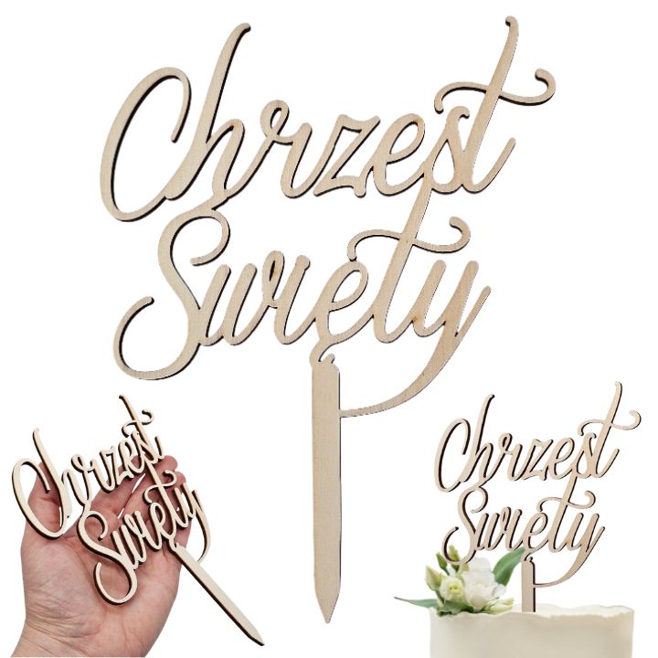 Topper na tort napis Chrzest Święty drewniany WYPRZEDAŻ