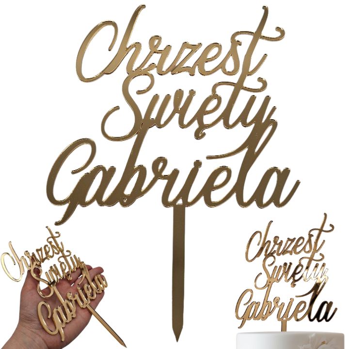Topper na Chrzest Święty z imieniem złoty lustrzany