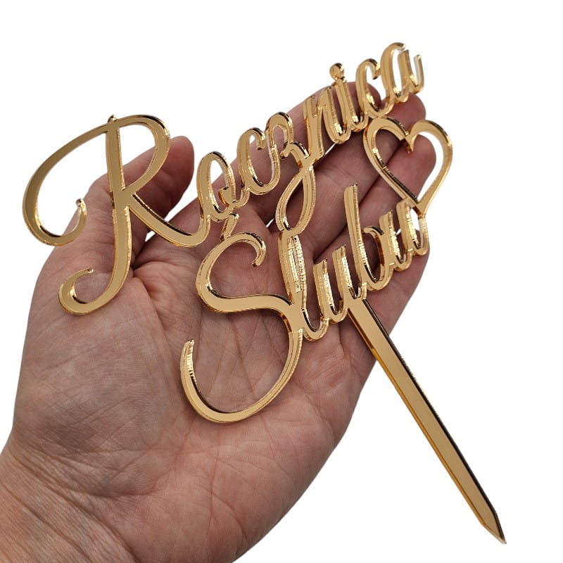 Złoty topper na Rocznicę Ślubu z serduszkiem
