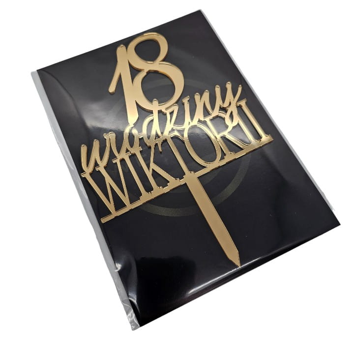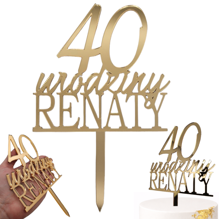 Topper na urodziny z imieniem wiekiem złoty lustrzany
